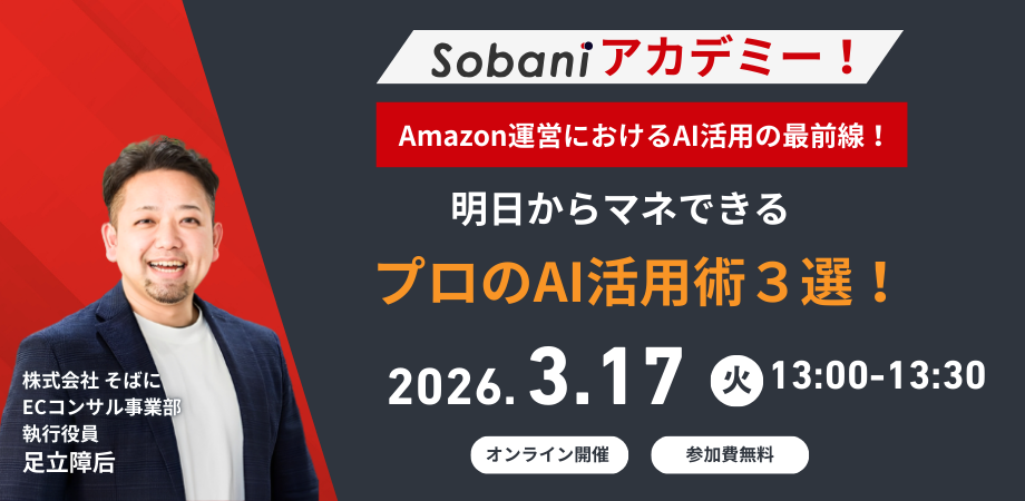 【3/17開催!】【そばにアカデミー!】Amazon運営におけるAI活用の最前線!明日からマネできるプロのAI活用術3選!
