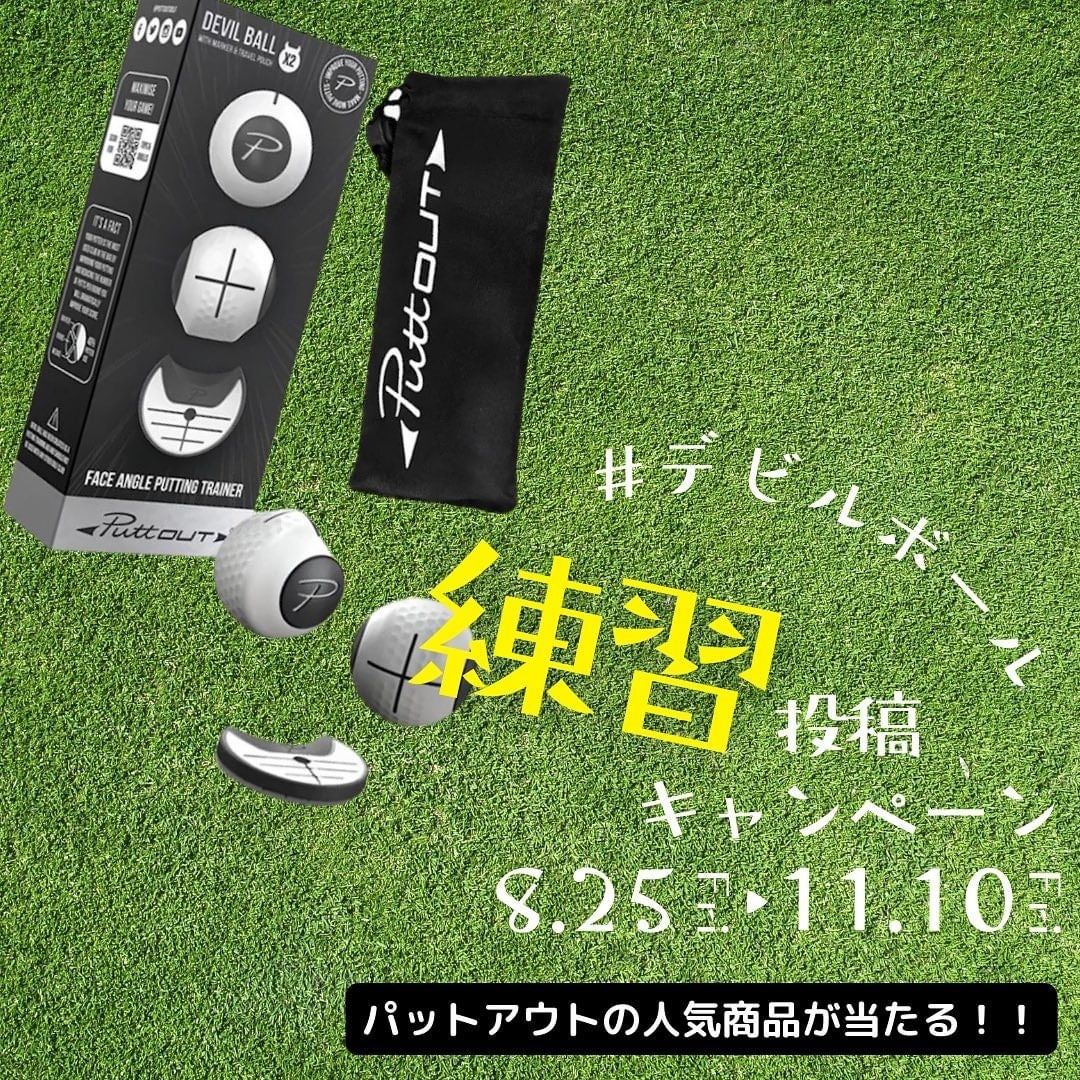 こちらはデビルボールを購入していただき、インスタグラムで練習している投稿をしていただくと13名様限定でPuttOUTの商品が無料でもらえるキャンペーンです!