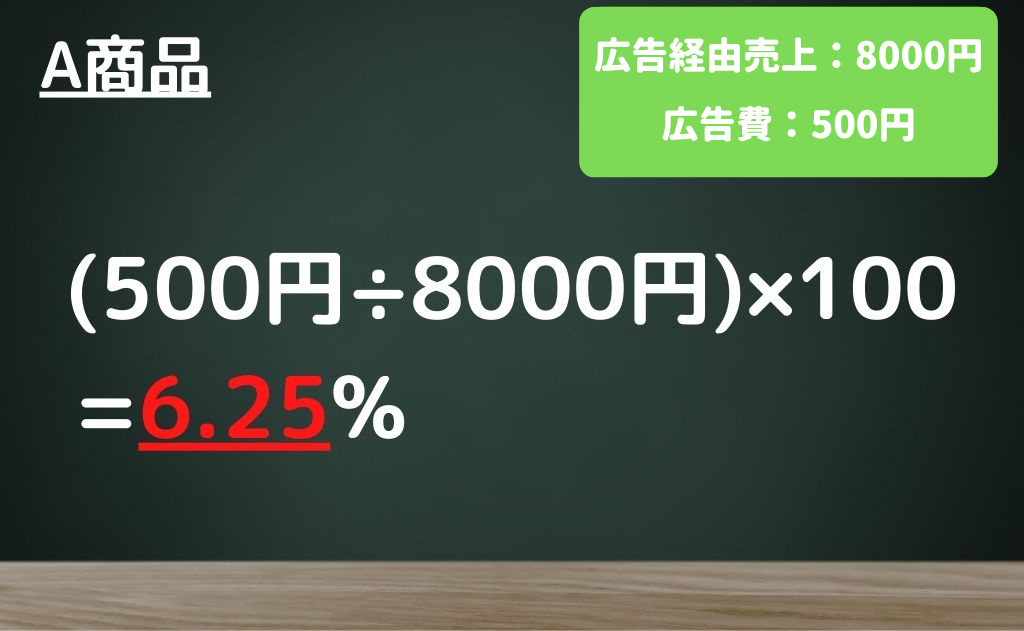 計算式は(広告費 ÷ 広告経由の売り上げ)× 100となります。