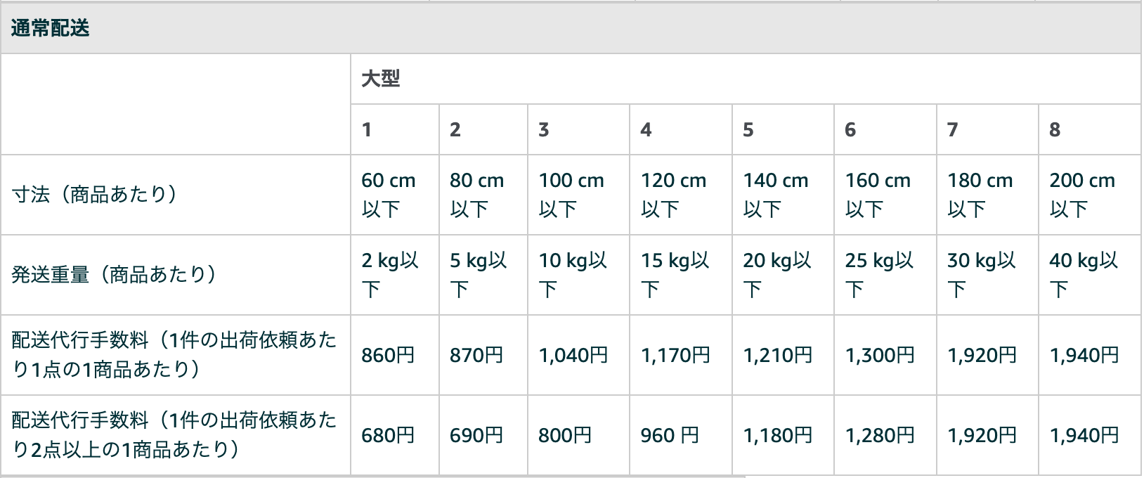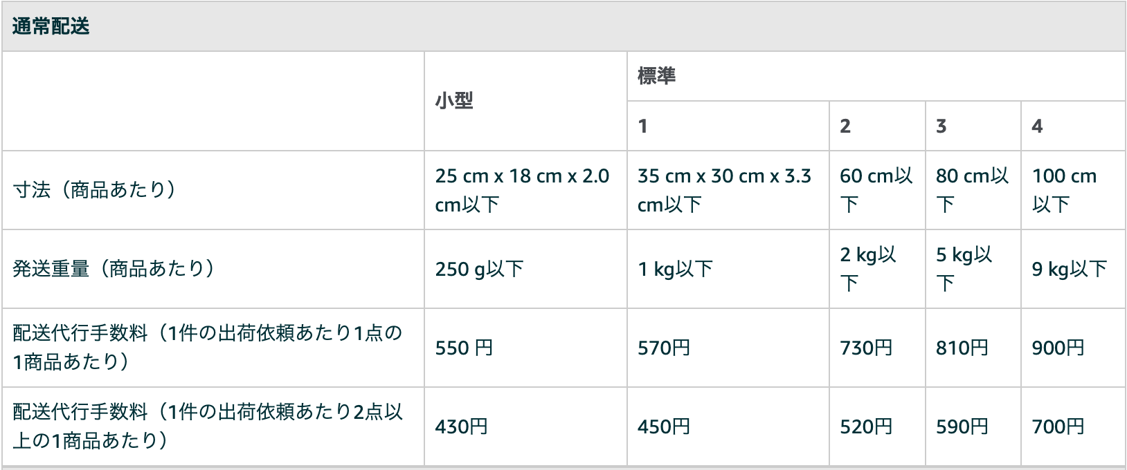 FBAマルチチャネルサービスの発送料金は以下の通りになっています!